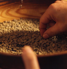 焙煎する前に、ひとつひとつ豆をチェックし、傷んだ豆を手作業で取り除いていきます。